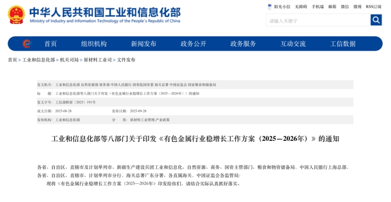该方案明确提出2025 - 2026年有色金属行业发展目标及系列政策举措。