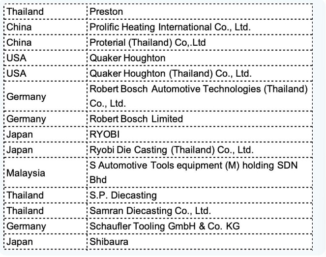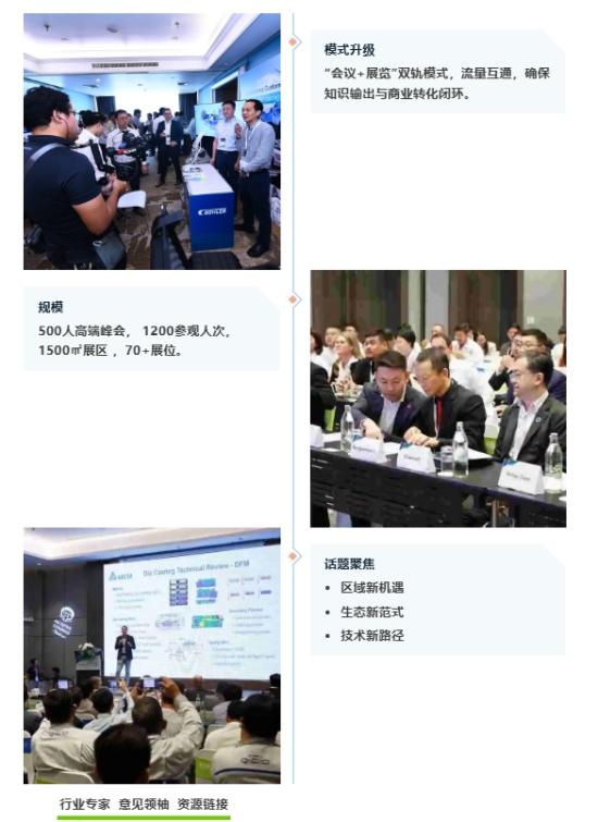 参加理由 崛起的市场,连接全球,重塑格局 新兴枢纽,战略支点,驱动东南亚产业转型升级 顶级专业平台:打造东南亚压铸行业顶级会展平台,汇聚全球前沿技术、优质资源与行业领袖,构建高效交流与合作生态。 全域辐射网络:立足泰国产业枢纽,辐射东南亚核心经济体,深度链接"一带一路"沿线、日韩、中国港澳台等关键市场,驱动区域协同发展,重塑市场格局。 整合资源,赋能增长:紧扣压铸行业全球化整合趋势,应对供应链重构需求,依托东南亚产业基础与泰国地缘优势,整合资源,助力企业深耕本地、布局未来。