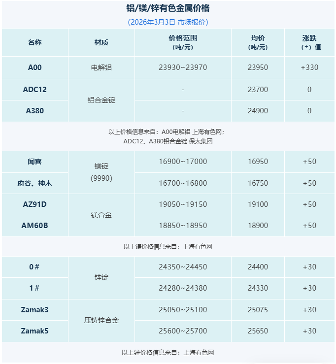 压铸早报2026/3/4星期三