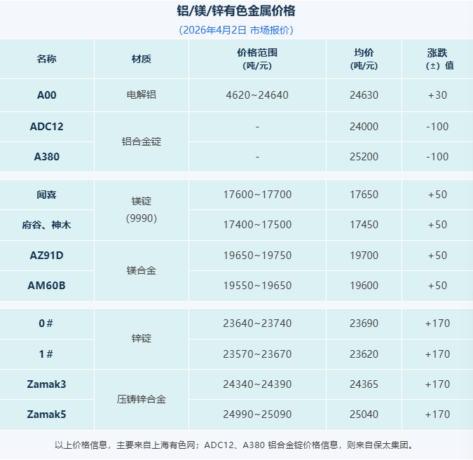 压铸早报2026/4/3星期五