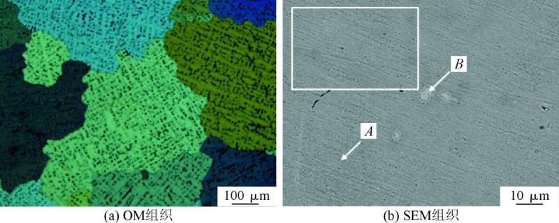 图4 流变挤压态AM合金的OM和SEM微观组织观察