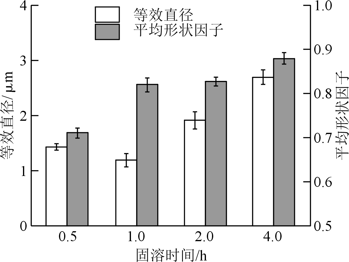 图5 不同固溶时间处理对合金中共晶Si相的等效直径和形状因子的影响