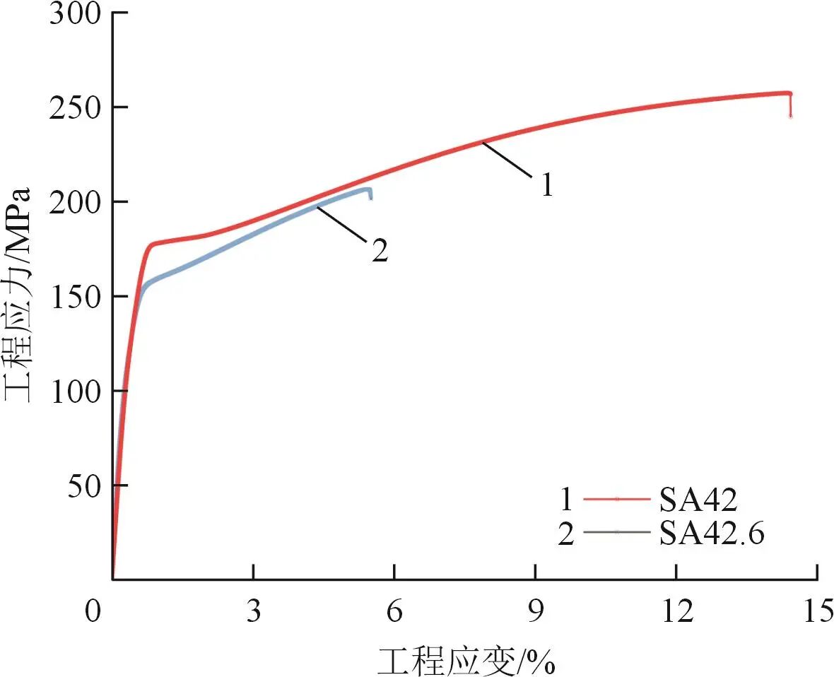 图4 SA42和SA42.6合金的室温工程应力-应变曲线