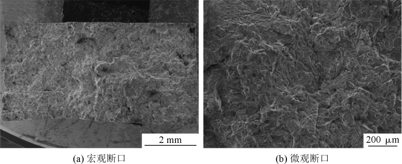 图12 缸体铸件CT检测结果 对缸体铸件本体进行取样,图13为缸体铸件的取样位置和拉伸试验试样,根据GB/T 228.1-2021对所取的4个试样进行拉伸试验。在常温条件下测得缸体铸件的抗拉强度、屈服强度和伸长率均值分别为286.5 MPa、247.3 MPa和3.2%,力学性能良好,满足铝合金缸体铸件要求。对拉伸试样断口进行电镜检测,其拉伸断口微观形貌见图14。可以看出,拉伸断口存在较多韧窝,且比较均匀,能观察到许多涟波花样,力学性能较好。结果表明,铸件正置底注式方案B下生产的铝合金缸体铸件满足使用要求。