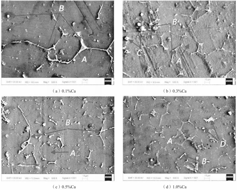 本研究在Mg-2Zn-1Y-0.5Nd-0.5Zr成分的基础上,添加适量的Ca,研究Ca含量对合金铸态显微组织和力学性能的影响。