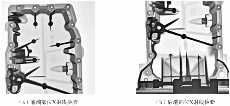 优化后油道位置模具温度降至170 ℃,进行批量生产验证,试压无泄漏及裂纹出现。铸件外观明亮,无冷隔、流痕等缺陷存在,抛丸处理后表面粗糙度符合要求,无明显抛丸起皮现象,如图14所示。对产品进行X光射线检验,内部质量良好,整体孔隙满足ASTME505 2级标准要求,如图15所示。油道位置解剖后对该位置剖面及内部进行针对性检验,无明显气孔、缩孔存在,如图16所示。按此工艺进行批量生产,泄漏料废率0.48%,产品综合合格率达到98%以上,满足批量生产要求。
