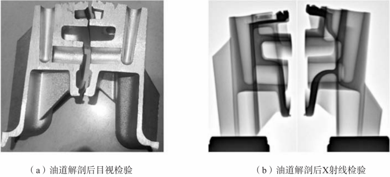 在小批量压铸生产过程中,主要存在如图8所示问题:高压油道孔(不加工)泄漏,料废占比30%,且部分泄漏产品孔内目视可见裂纹存在。