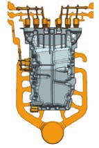根据汽车发动机油底壳结构进行压铸工艺设计,利用CAE模拟软件进行数值模拟,通过优化高压点冷及流道方案,结合模具温度场的分析与控制,实现油底壳热节位置缩孔、泄漏问题的改善,提升了产品质量,满足了批量生产条件。