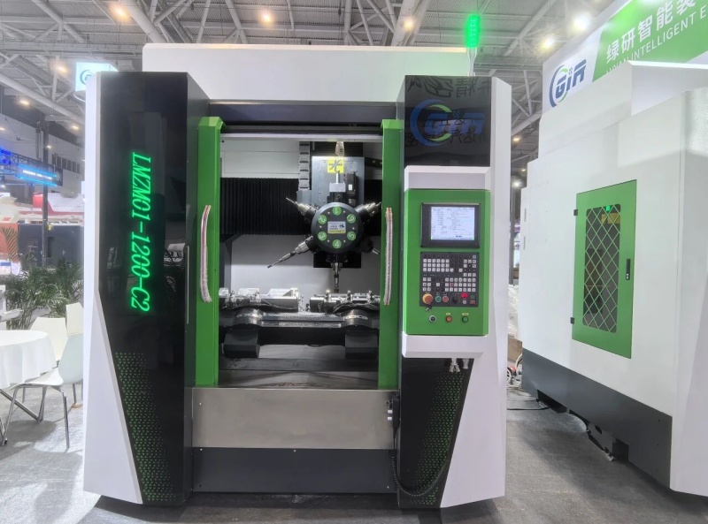 本次展会上,江苏绿研集中展示了其创新技术成果:针对铝合金压铸件的LMZM01-550六轴CNC去毛刺机、LMZM01-1200-C2双主轴双工位六轴CNC去毛刺机,以及专为镁合金铸件定制的LMZM01-900-C1六轴CNC去毛刺机。其中,LMZM01-1200-C2的双工位协同设计引发广泛关注,该设备可实现两个铝合金铸件在不同工位同步加工,分别完成正面与反面的去毛刺处理,突破了传统单工位加工的效率瓶颈,为企业规模化生产提供了高效解决方案。