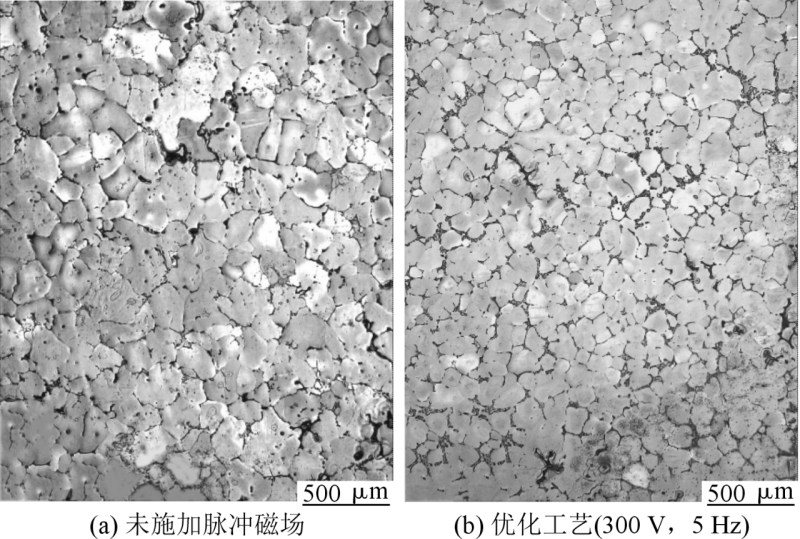 图15 优化工艺和未施加脉冲磁场条件下获得的7050合金的凝固组织