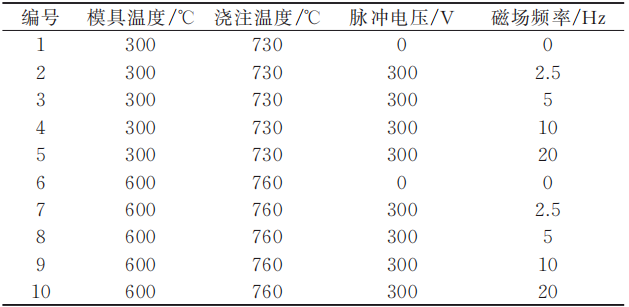 (2)7050铝合金脉冲磁场细晶铸造优化工艺条件:模具温度为300 ℃,浇注温度为730 ℃,脉冲电压为300 V,脉冲频率为5 Hz。