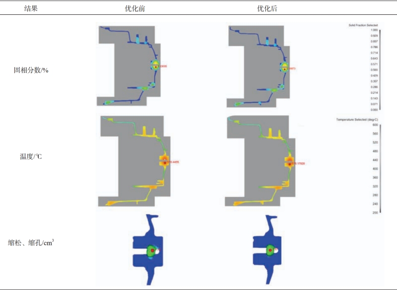 采用表2所示的参数,对铸件的充型与凝固过程进行模拟分析,从而确定需要改进的工艺参数,并通过正交试验进行优化,得出最佳的压铸工艺参数组合。随后对铸件采用最佳工艺参数组进行充型与凝固过程的模拟,分析是否仍有区域出现较大体积的缩松缩孔缺陷,若有,则对该区域进行进一步的优化。