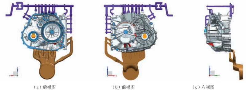 汽车变速器壳体是汽车传动系统中的关键部件之一,其性能直接关系到汽车的整体性能表现。2011年,德国知名变速器制造商ZF正式对外发布了汽车历史上第一款9AT自动变速器,相较6AT变速器降低10%~16%的燃油消耗。随着档位的增加,变速器运行过程中传递扭矩增大,导致壳体设计面临更大挑战。在实际应用中,壳体最大壁厚差可达到36.5 mm,尤其是底部壁厚较大的多孔区域,形状复杂且作为油道集成区域,需确保在使用时不发生泄露。因而对变速器主壳体的力学性能、尺寸精度以及密封性等提出更严格的要求。