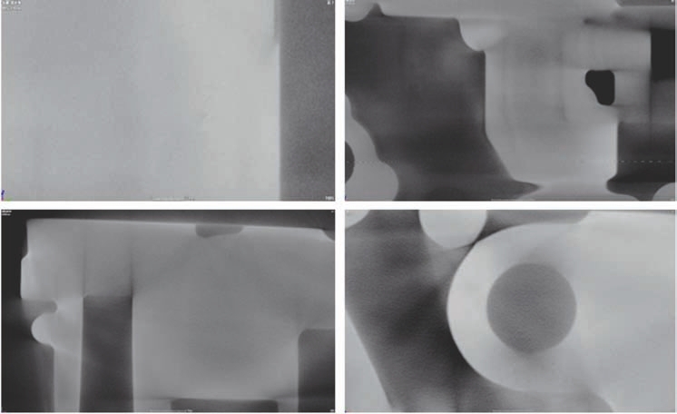 采用该工艺进行生产验证,铸件的X射线探伤结果如图12所示。探伤结果表明,采用该工艺生产的铸件基本无缩松、缩孔缺陷,铸件质量较好,表明优化后的低压铸造工艺方案适于成形某型燃油调节器铸件。