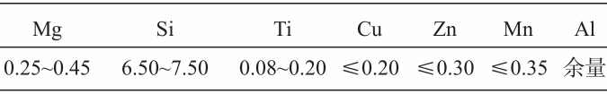 表1 ZL101A铝合金的主要化学成分 wB/%