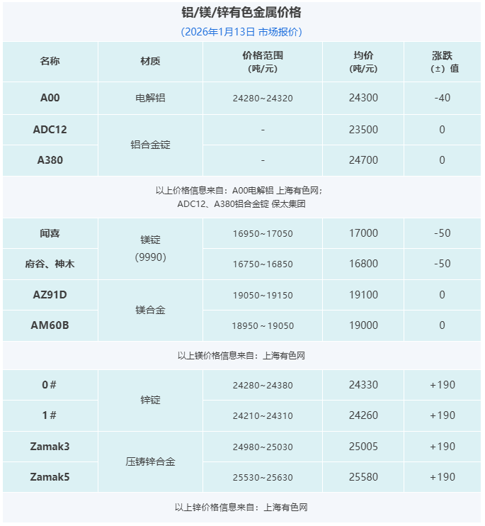 压铸早报2026/1/14星期三