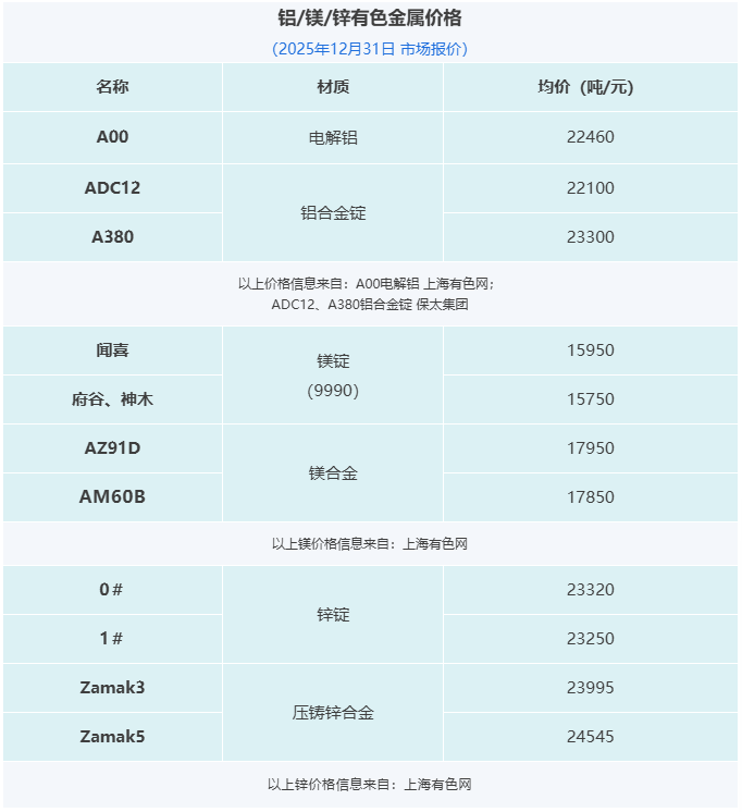 压铸早报2026/1/5星期一