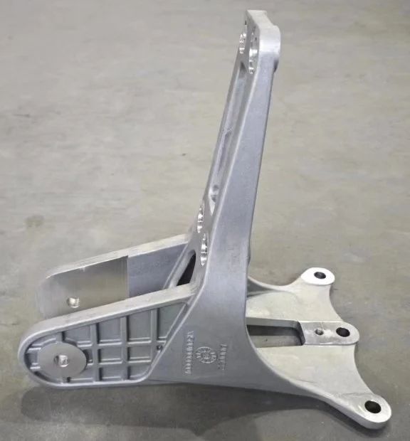 本产品是汽车制动系统的核心部件。该阀体具备两侧对称结构,用于装配继动阀组件,实现两侧独立控制。阀体顶部通过螺钉连接,用于安装控制器组件。阀体底部通过卡扣连接,用于安装消声器组件。 参与企业:机械科学研究总院(将乐)半固态技术研究所有限公司 鉴赏铸件一 铸件名称:车身上托架