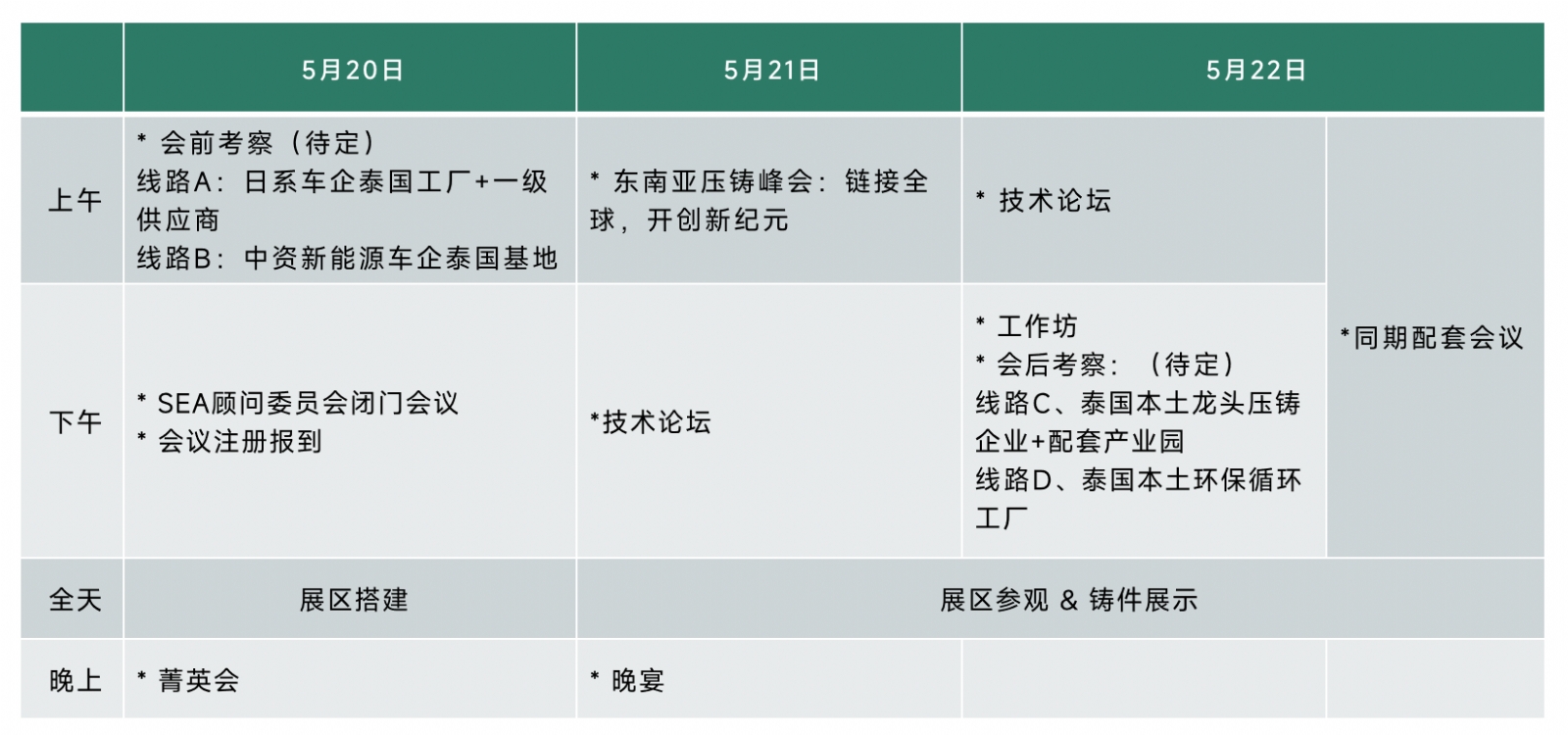 时间:2026年5月20-22日 地点:泰国 · 春武里 · 邦盛会议中心 随着全球制造业面临绿色化与数字化的深刻变革。东南亚尤其是泰国,凭借其区位优势、政策支持与完善的产业链,正从全球汽车制造基地向下一代产业创新中心演进。在新能源汽车快速发展的驱动下,压铸行业亟需从单一零部件供应向一体化、轻量化、智能化的系统解决方案转型升级。 在前两届会议成功连接中泰产业的基础上,我们认识到,未来竞争力依赖于整个生态系统的融合与协作——不仅是供应链的整合,更是技术、资本、人才与信息在区域层面的深度互动与价值共创。作为东南亚汽车制造枢纽,泰国积极推进电动化转型,为中外压铸企业带来广阔的合作空间与应用机遇。 基于此,2026第三届东南亚(泰国)压铸会议暨展览会(SEA Die Casting Conference & Exhibition 2026)全面升级为“会议+展览”模式。本届以“赋能东南亚,开创新纪元”为主题,致力于构建集技术展示、行业交流、商业对接与生态合作为一体的高端平台。