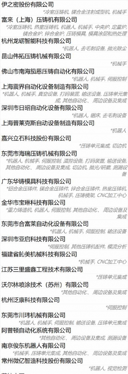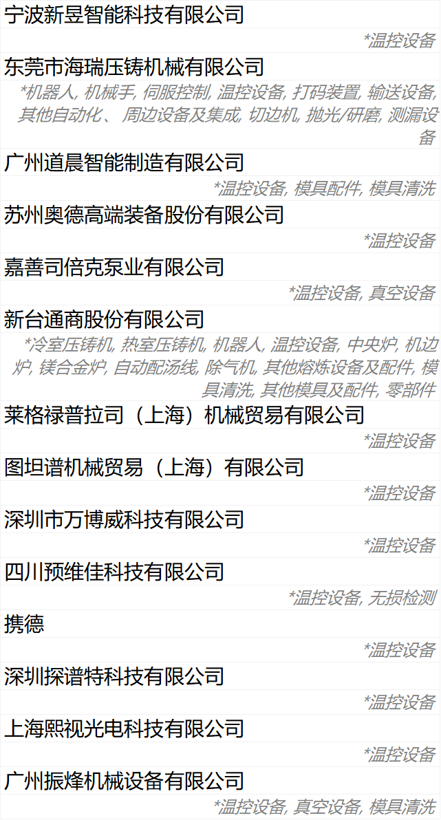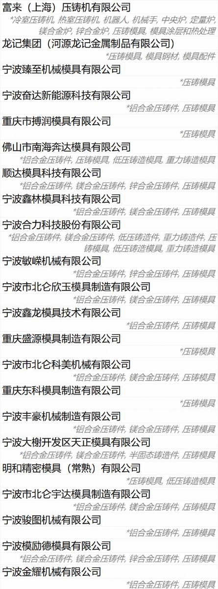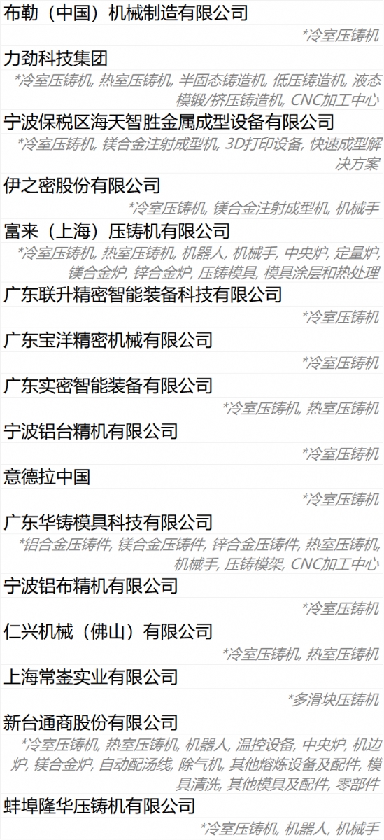 随着展位预定工作的持续推进,80%展商已确定参展,展商阵容正逐步成型。 压铸机