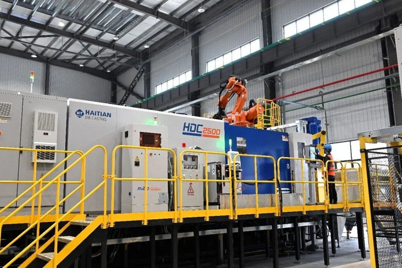 压铸车间。图源:五菱柳机 值得一提的是,项目一期建设仅用时9个月便顺利建成并投产。此次下线的首批产品,涵盖上汽通用五菱多款重点车型的电机壳体、减速器壳体以及混动箱壳体等动力域核心零部件。