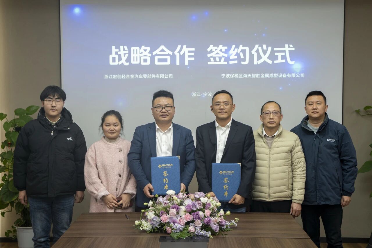 12月23日,海天智胜金属与浙江宏创轻合金汽车零部件有限公司正式签署镁合金注射成型机战略合作协议。