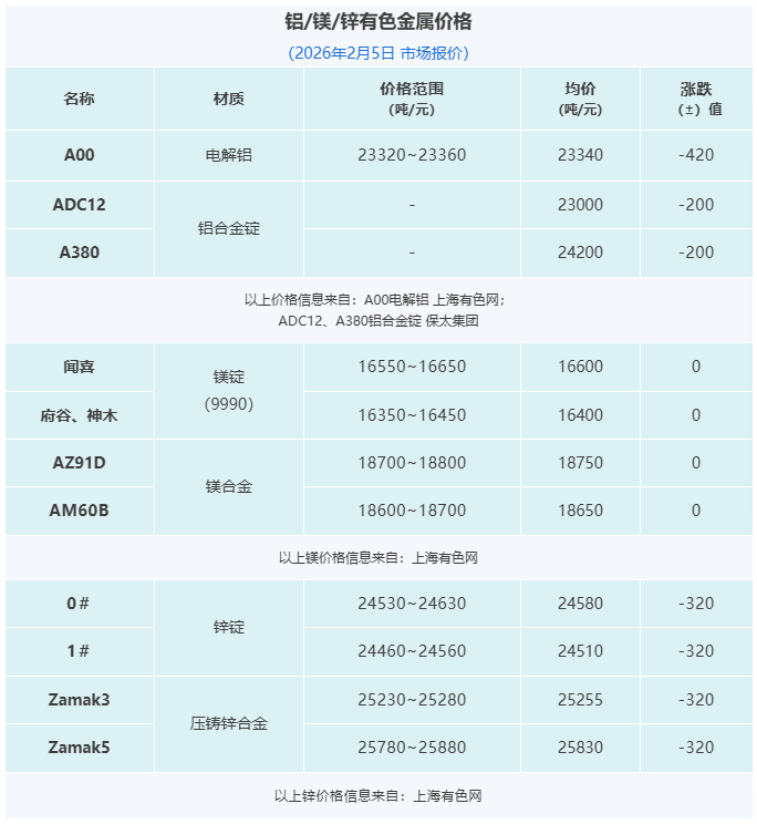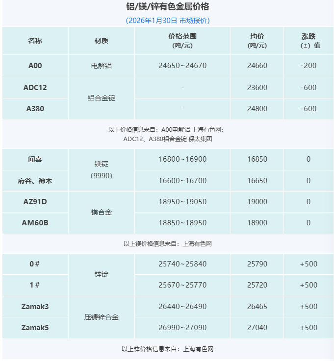 晋拓股份墨西哥压铸工厂启动试生产;宝武镁业:联营公司安徽宝镁新建项目处于投产爬坡阶段;隆源股份2025年营收增长18.05%;怡球资源2025年预计净利最高至1.99亿元。