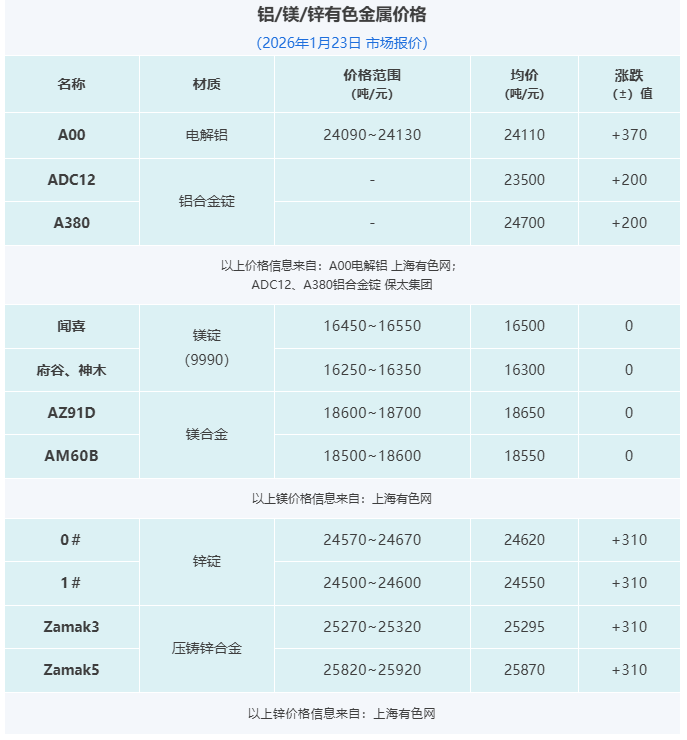 压铸早报2026/1/23星期五