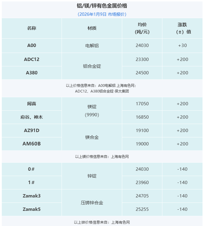 压铸早报2026/1/9星期五