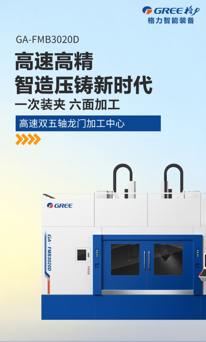 珠海格力智能装备有限公司推出高速双五轴龙门加工中心、高速高精卧式加工中心、钻攻机等多款CNC机加工装备。