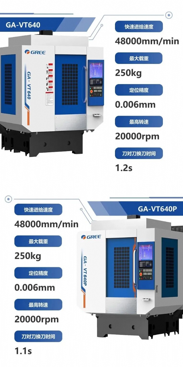 高速高精卧式加工中心 格力高速高精卧式加工中心 GA-UHD500,兼具更强扭矩、更大载重与更小占地的优势,相较同类设备占地减少 20%、加工效率提升 30%,适用于精密加工电机壳、减速机壳体、转向节等汽车压铸零部件。