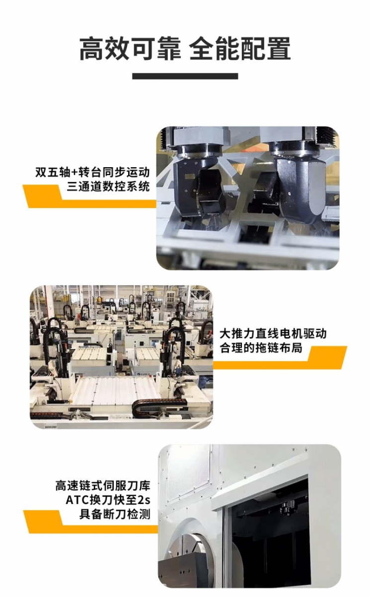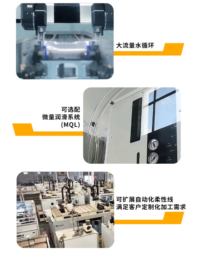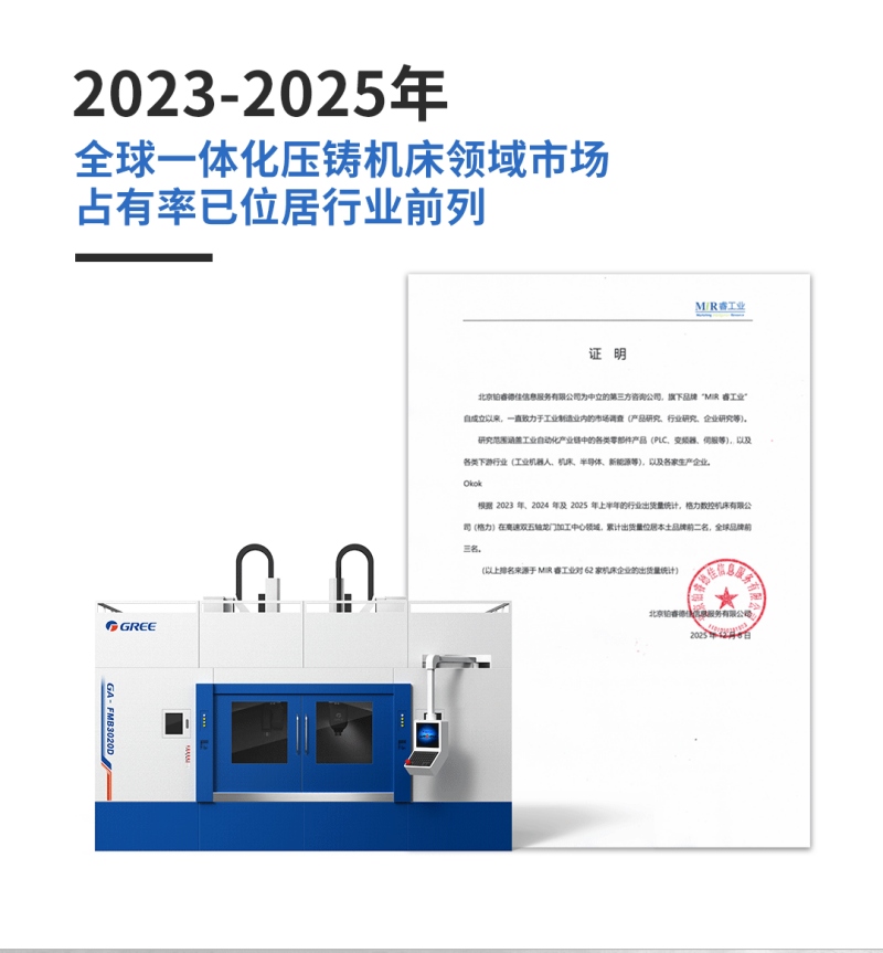 ![]() 为满足不同尺寸大小、各类应用场景的轻金属合金压铸件的精密加工需求,珠海格力智能装备有限公司(简称“格力智能装备”)推出高速双五轴龙门加工中心、高速高精卧式加工中心、钻攻机等多款CNC机加工装备。 高速双五轴龙门加工中心 格力高速双五轴龙门加工中心 GA-FMB3020D,专为汽车轻量化一体化压铸而打造,可实现一次装夹六面加工的一站式解决方案。主要用于前机舱、后底板、电池托盘等大型一体化压铸新能源汽车零部件的精密机加工。该机型还在 2025 年斩获日内瓦国际发明展金奖。