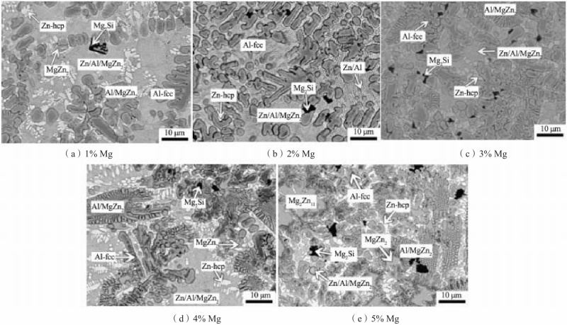镁和铝含量变化对锌铝镁硅合金凝固组织的影响