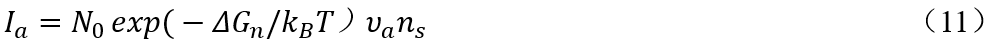 类似地,将晶胚碰撞比拟为一个原子向一个晶胚上的跳跃吸附。假定只要碰撞就可以合并,不会反弹离开,所以晶胚表面可接受新晶胚的位置密度ns=100%=1,则晶胚碰撞形核率Ic可以表达为: