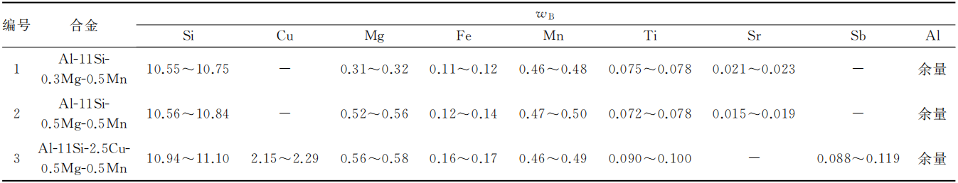 ![]() 原标题:苏州有色金属研究院:挤压铸造高强韧AlSiMgMn合金的组织和性能 由于汽车轻量化的需要及铸造新技术的发展,铝合金铸件取代部分铸钢件、铝锻件或多部件组合已成为一种趋势,这些铸件通常结构复杂且对强度和塑性有很高的要求。一方面挤压铸造、真空压铸、差压铸造等被用于成形复杂铸件;另一方面开发汽车结构件用高强韧铸造铝合金也是迫切需求。铸造性能优异的亚共晶或近共晶Al-Si合金是铸造铝合金的首选,而对于如何通过合金成分调整、热处理和铸造工艺优化等提高其力学性能已有大量的研究报道。Mg和Cu是Al-Si系合金常用的强化元素。Fe是Al-Si合金中的主要杂质元素,常以长针状β-Fe相的形式存在,严重降低合金的塑性。适量的Mn能够将针状的β-Al5FeSi相转变为汉字状α-Al15(Fe, Mn)3Si2相从而提高合金的塑性。自20世纪90年代以来,国外一些公司相继开发了一些低Fe高强韧AlSiMgMn合金,如Silafont36、C601、Aural、AA367等,主要用于真空压铸生产汽车结构件。而国内在Al-Si系高强韧合金的开发方面与国外尚有较大的差距。 挤压铸造的优点之一就是铸件在低流速下充型、高压力下凝固,得到的铸件组织致密,并能进行热处理,使得挤压铸造成为铝合金强韧化的一种有效途径。本课题设计了3种高强韧AlSiMgMn合金, 利用金相显微镜 (OM) 、扫描电镜 (SEM) 和能谱分析 (EDS) 等手段,研究了挤压铸造AlSiMgMn合金的组织和性能,得到了优化的T6热处理工艺,并阐述了合金强韧化性能提高的机理。 图文结果 设计了3种高强韧铸造铝合金 (成分见表1),原材料用99.7%的纯铝、99.9%的纯镁和Al-20Si、Al-10Mn、Al-50Cu中间合金。考虑到合金元素Cu和Mg等对Sr变质的削弱作用,对高Cu含量的合金使用Al-5Sb变质,其他两种合金用Al-10Sr变质。熔炼后的合金试样在Thermo ARL 4460直读光谱仪上进行分析,单炉铸造2h内间隔取样6次的实测合金成分。每炉次配制合金400kg, 在电阻炉中加热至760℃熔化,降温到740℃加入纯镁锭,然后加入Al-10Sr或Al-5Sb进行变质处理。5~10min后, 采用石墨转子吹入高纯氩气对熔体除气精炼,转子转速为250r/min,压力为0.5MPa,除气时间为20min。除气后静置30min以上,并调温至700℃开始挤压铸造。 表1 挤压铸造高强韧铝合金的化学成分范围(%)