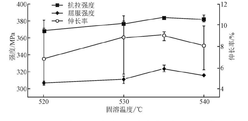图13 不同固溶工艺下3号合金的力学性能