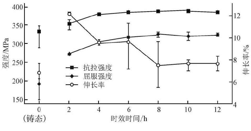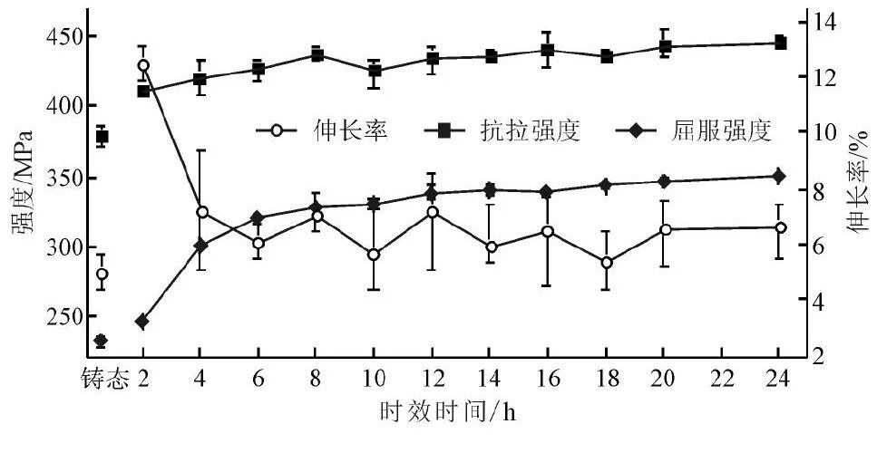 图11 时效时间对2号合金力学性能的影响