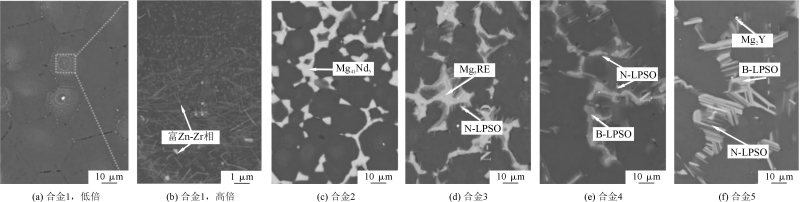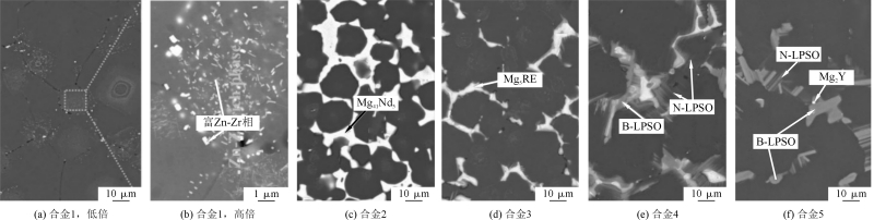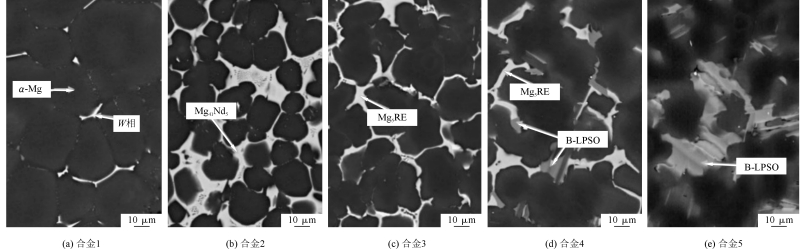 图8 铸态MZGZC-xY-yNd合金的SEM图像