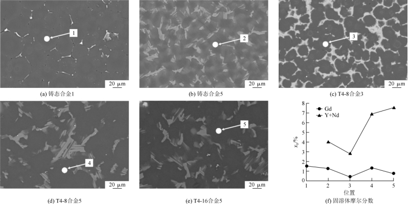 图6 T4-16态MZGZC-xY-yNd合金的显微组织