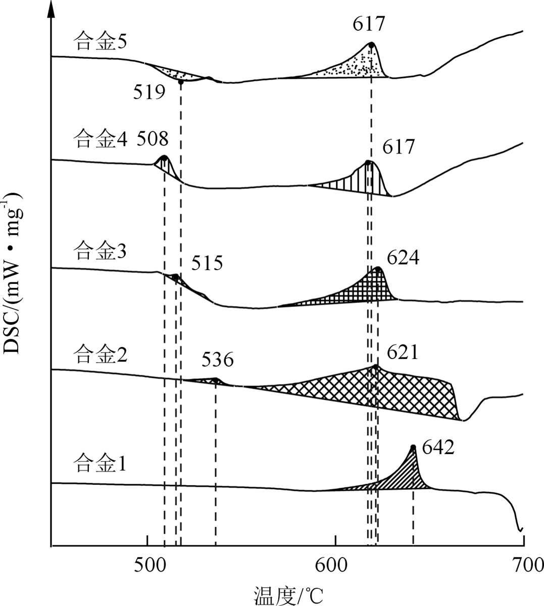 图1 铸态MZGZC-xY-yNd合金的DSC曲线