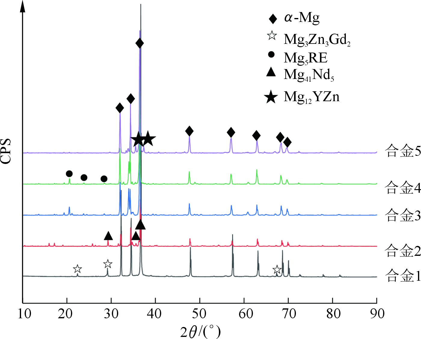 图3 铸态MZGKX-xY-yNd合金的XRD图谱