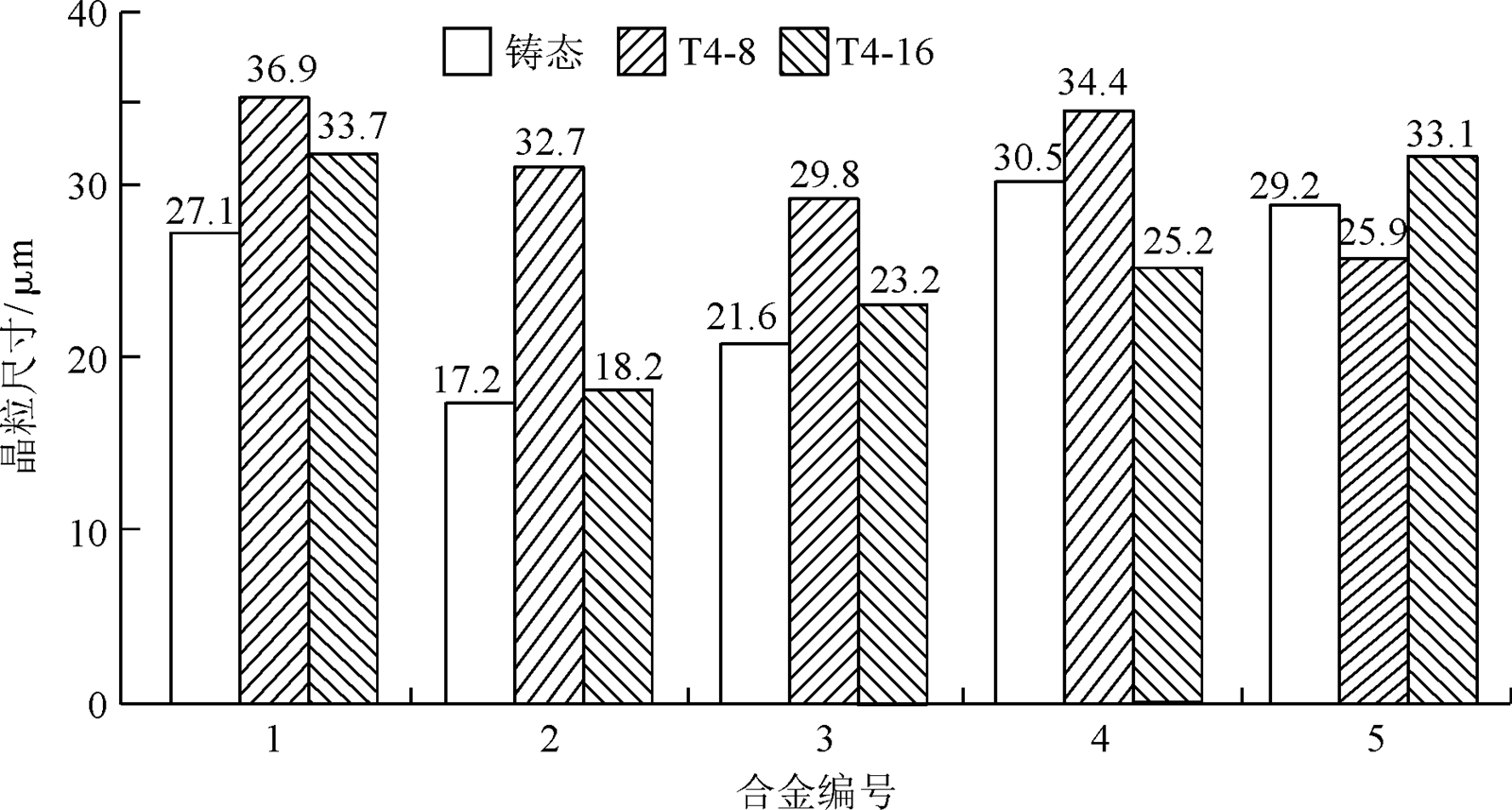 图7 不同状态下MZGZC-xY-yNd合金的晶粒尺寸