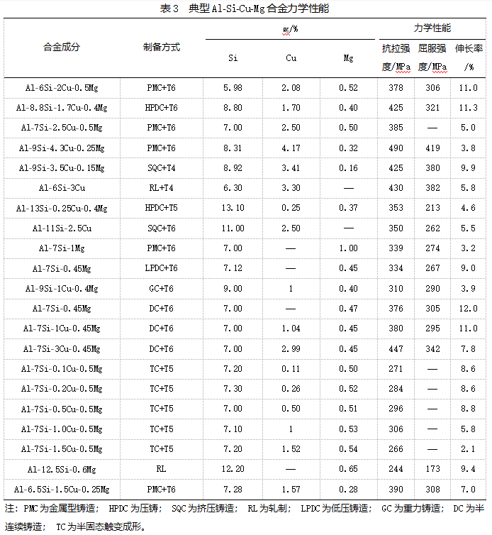 ![]() 原标题:Al-Si-Cu-Mg合金研究现状与展望 1 导读 在航空航天的万米高空、汽车工业的减重浪潮中,一种兼具低密度与高强度的材料正扮演着关键角色 —— 这就是 Al-Si-Cu-Mg 合金。它凭借优越的力学性能,成为高端制造领域的 “香饽饽”,但目前关于它的系统性研究总结却相对匮乏。今天,我们就带大家深入解读一篇聚焦 Al-Si-Cu-Mg 合金的研究综述,看看这种合金的成分设计、成形工艺、热处理技术有哪些突破,又将如何推动未来工业发展。 随着航空航天、汽车等领域对 “轻量化、高强度” 的需求日益严苛,铝合金因其密度低、比强度高、可塑性好的优势,成为现代工业中应用最广泛的有色金属材料之一。而 Al-Si-Cu-Mg 合金作为高性能铝合金的代表,在 Al-Si 合金基础上添加了 Cu 和 Mg 等元素,能形成 Mg₂Si、Al₂Cu 和 Al₅Cu₂Mg₈Si₆等强化相,进一步提升强度、韧性与耐腐蚀性,因此被广泛用于飞机结构件、汽车核心部件等关键场景。 比如,ZHENG Y 等研究者通过调整 Cu 含量和 Cu、Mg 质量比,开发出抗拉强度 378MPa、屈服强度 306MPa、塑性 11% 的 Al-6Si-2Cu-0.5Mg 合金;DONG X X 团队研发的 Al-8.8Si-1.7Cu-0.4Mg 压铸铝合金,经特定热处理后抗拉强度更是达到 425MPa,完全能满足汽车电驱部件、航空航天轻量化结构的需求。 不过,尽管当前关于 Al-Si-Cu-Mg 合金的研究已取得大量进展,相关的系统性综述却较为匮乏,导致行业难以全面掌握其技术脉络。为此,来自上海理工大学材料与化学学院的研究团队,从合金化基础、成形工艺、热处理工艺三个核心维度展开综述,为高性能铝合金的研发与应用提供了关键参考。 2 内容来源 本文内容基于上海理工大学材料与化学学院赵赟淏、孙明、裴林清等团队发表在《特种铸造及有色合金》2025年第9期上的综述文章《Al-Si-Cu-Mg合金研究现状与展望》。文章系统总结了该合金在合金化基础、成形工艺及热处理等方面的研究进展,并对未来发展趋势进行了展望,为该领域的研究与工程应用提供了重要参考。 3 研究亮点 本综述首次系统梳理了Al-Si-Cu-Mg合金在成分设计、成形工艺与热处理方面的协同作用机制,尤其关注了Cu/Mg比例对强化相析出行为的影响,以及挤压铸造、真空压铸等先进成形技术对合金性能的提升效果,为开发新一代高性能铝合金提供了理论依据与工艺指导。 4 研究方法 本文采用文献综述与数据分析相结合的方法,系统梳理了近十年Al-Si-Cu-Mg合金在成分设计、成形工艺与热处理方面的研究成果,通过对比不同工艺下合金的力学性能数据,总结其微观组织与性能之间的关联规律,并在此基础上提出未来研究方向。 5 内容解读 1. Al-Si-Cu-Mg 合金的合金化基础