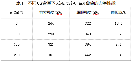 合金化是决定 Al-Si-Cu-Mg 合金性能的核心,研究主要围绕 “改性、晶粒细化、形成新强化相” 三个目标展开。Si 作为基础元素,在合金中常呈板条状或长针状,会降低力学性能,需通过热处理(如 T4 态)或添加 Sr、Na 等变质剂使其球化;Cu 能通过固溶强化和形成 Al₂Cu 相提升强度,其中片层状 Al₂Cu 相的显微硬度(HV280)远高于块状(HV185),但 Cu 含量过高会导致伸长率下降、耐腐蚀性降低;Mg 则通过形成 Mg₂Si 沉淀相强化合金,一般添加量控制在 3% 以内,且 Cu、Mg 质量比会影响 θ、Q、β 等强化相的析出效果。