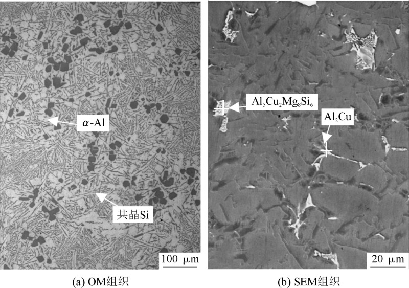图4 重力铸造Al-18Si-4.5Cu-0.5Mg合金的微观组织