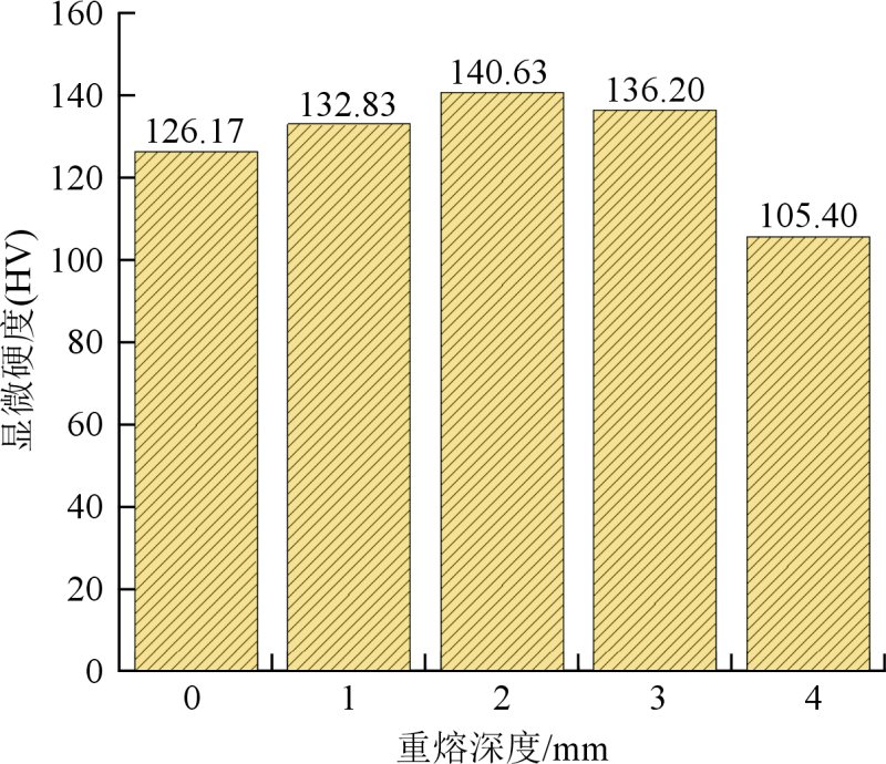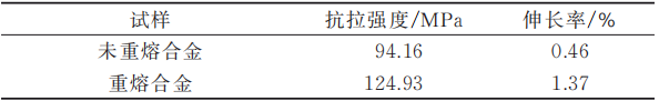 图7 试验合金不同重熔深度的硬度 表2 未重熔与重熔合金的力学性能