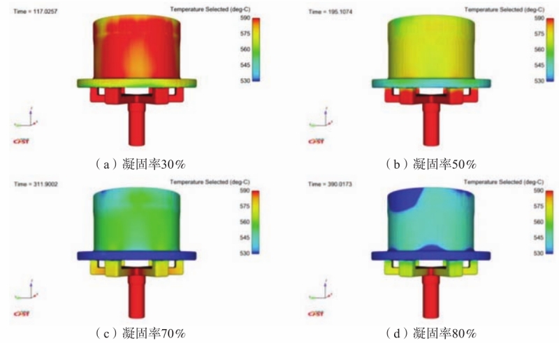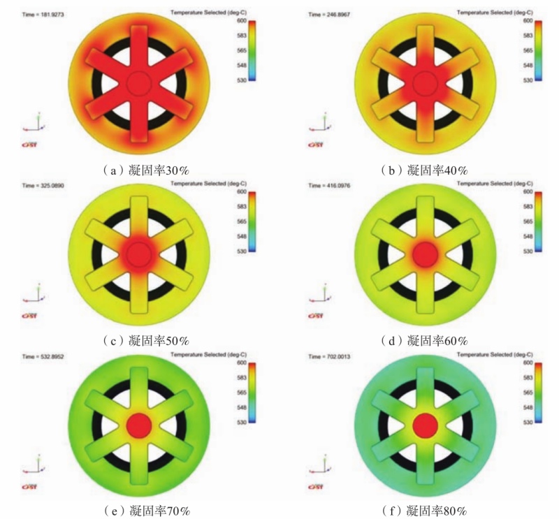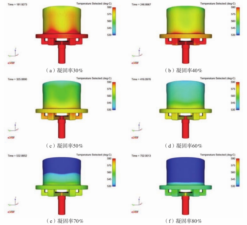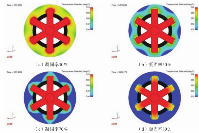 图6 凝固过程温度分布主视图