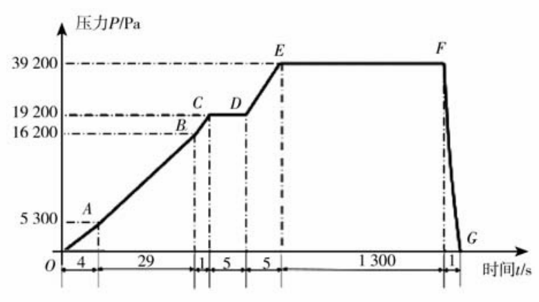 式中:t为充型时间(s);v为充型速度(cm/s);H为金属液上升高度(cm)。 在低压铸造中,浇注温度及模具温度的确定原则与普通浇注的情况一致,即在保持铸件成形的先决条件下,以较低浇注温度为宜,原因是可以减小液态金属吸气和收缩,使铸件产生气孔、缩孔、缩松、内应力和裂纹等缺陷机会减少,同时使铸件组织致密。低压铸造中,液态金属是在压力作用下充型,金属热量散失较慢,所以浇注温度比一般铸造方法低10~20 ℃。 依此设计原则,铝合金套筒的生产参数选取如图11的压力曲线,升液时间为4 s,升液增压速度为1 325 Pa/s;充型时间为29 s,充型增压速度为376 Pa/s,浇注温度为700 ℃,模具温度为100 ℃。在此生产参数(图11)下对充型的压力场、速度场、温度场及氧化渣的分布情况进行模拟分析,以确定选取的生产参数是否合理。