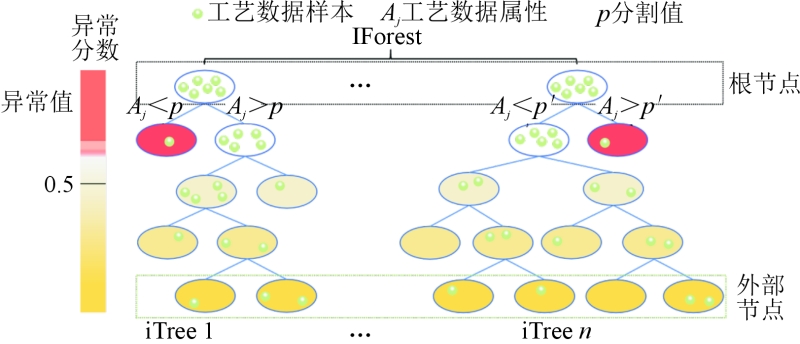 图4 IForest异常数据检测示意图 表3 IForest训练生成指定数目的孤立树