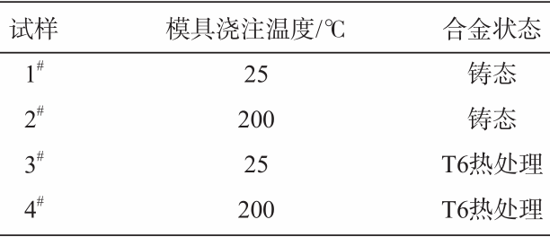 表2 铝合金试样 拉伸试验在万能拉伸试验机上进行,常温拉伸按照GB/T 228.1—2010标准执行,高温拉伸按照GB/T 4338—2006标准执行,拉伸试棒直径为10 mm。金相试验采用金相电子显微镜进行,断口扫描采用日式S-4800型场发射扫描电镜进行分析。 电化学腐蚀测试进行电化学工作站的三电极系统:测试的样本作为工作电极、铂丝电极与饱和甘汞参比电极。所有的电化学测量都在3.5wt% NaCl水溶液中进行,扫描速率为2 mV/s,从-1.8 V到-1.0 V。 02 试验结果与分析 2.1 显微组织分析 图1所示为铝合金金相组织图。图1a、b为铸态铝合金,析出的二次共晶硅相为针状,而经过T6热处理的铝合金(图1c、d)由于热处理使得共晶硅发生球化,成为圆滑的短棒状。比较图1a、b可以发现,1#试样铸态组织中硅颗粒的尺寸要远远小于2#试样,这是由于模具温度的降低提高了铝硅合金的形核速率,共晶Si相形状和尺寸减小;而经过T6热处理后,通过对比图1a、c可以看出,模具温度为25 ℃时经过热处理后硅颗粒的尺寸增加了,而对比图1b、d可以看出模具温度为200 ℃时,经过热处理后组织中的硅颗粒的尺寸减小了。经过热处理后图1c、d中硅颗粒的尺寸几乎相同,这是由于热处理使得组织更均匀化。